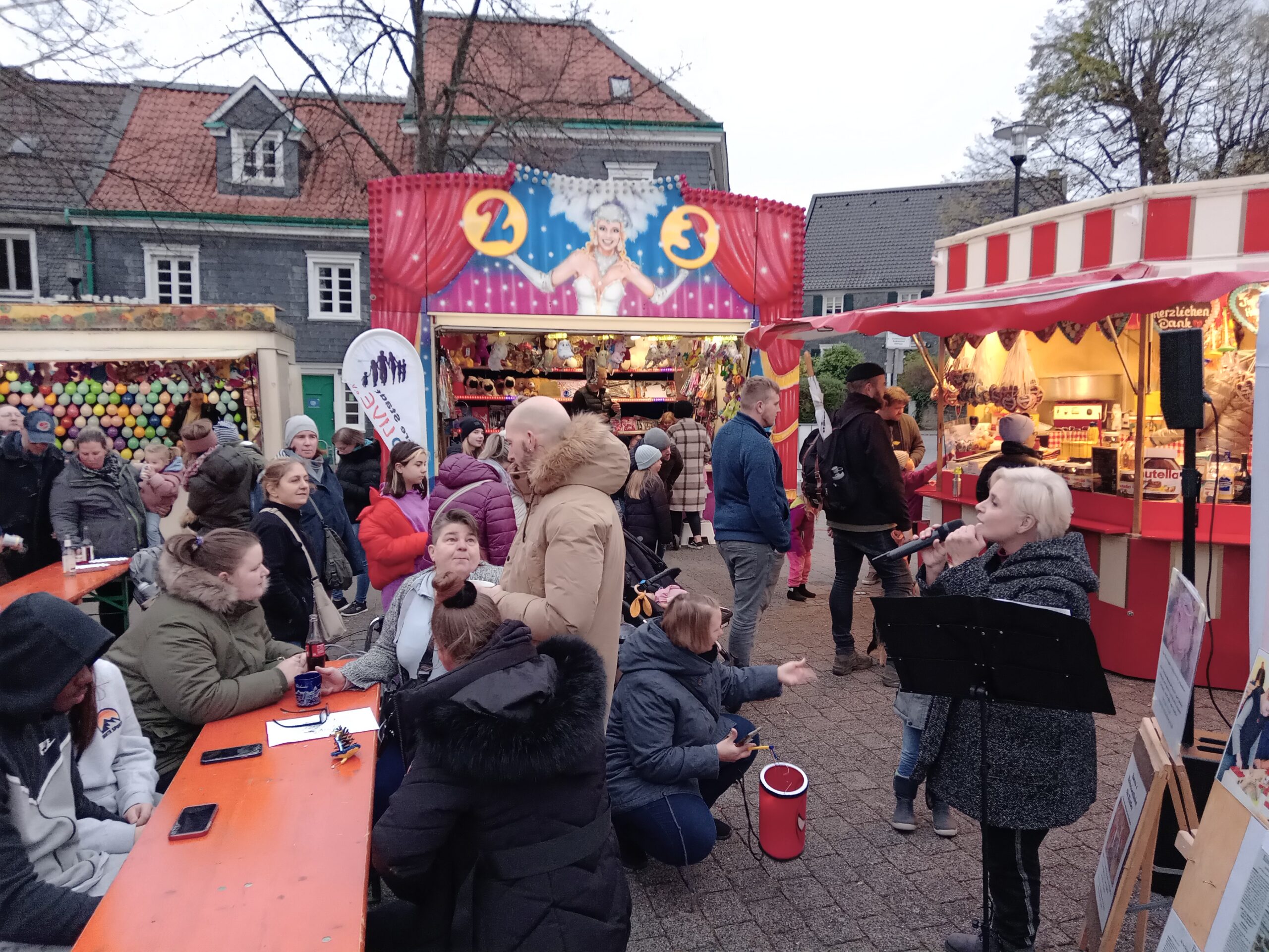 Sängerin Alex Seebald am Samstag und Solisten der Musik- und Orchesterschule Burscheid am Sonntag untermalen die Veranstaltung jeweils um 16.00 Uhr mit Martinsliedern. Für das leibliche Wohl an den beiden Tagen sorgen: Ballettschule „Modern Movement“ aus Wermelskirchen (Kaffe, Kuchen und Waffeln),„Fitzis-Weinzeiten“ (Wein, Glühwein, Kinderpunsch und mehr), die Schaustellerfamilie Kaselowski (Süßwaren) sowie die Eheleute Sciandrello aus Köln, die kurzfristig für den vorgesehenen Imbisswagen eingesprungen sind und herzhafte italienische Spezialitäten anbieten werden. Die Firmen Heim & Haus und Hyla beteiligen sich mit Präsentationsständen, während Petra Tillmanns (ehemals „Bergische Schnatterhütte“) aus gesundheitlichen Gründen ihren Stand mit Handarbeiten absagen musste.