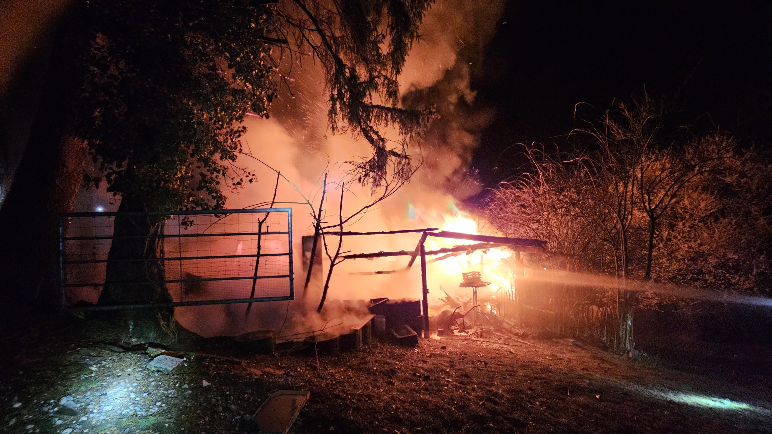 Beim Eintreffen der ersten Einsatzkräfte stand ein etwa 12 × 12 Meter großer Schuppen bereits in Vollbrand. In unmittelbarer Nähe befand sich ein Wohnhaus in einer Entfernung von rund 10 bis 15 Metern, sodass ein Übergreifen der Flammen zunächst nicht ausgeschlossen werden konnte. Zudem befanden sich rund um den Schuppen Sträucher, Büsche und weitere Vegetation, wodurch ebenfalls die Gefahr bestand, dass sich das Feuer weiter ausbreitet.