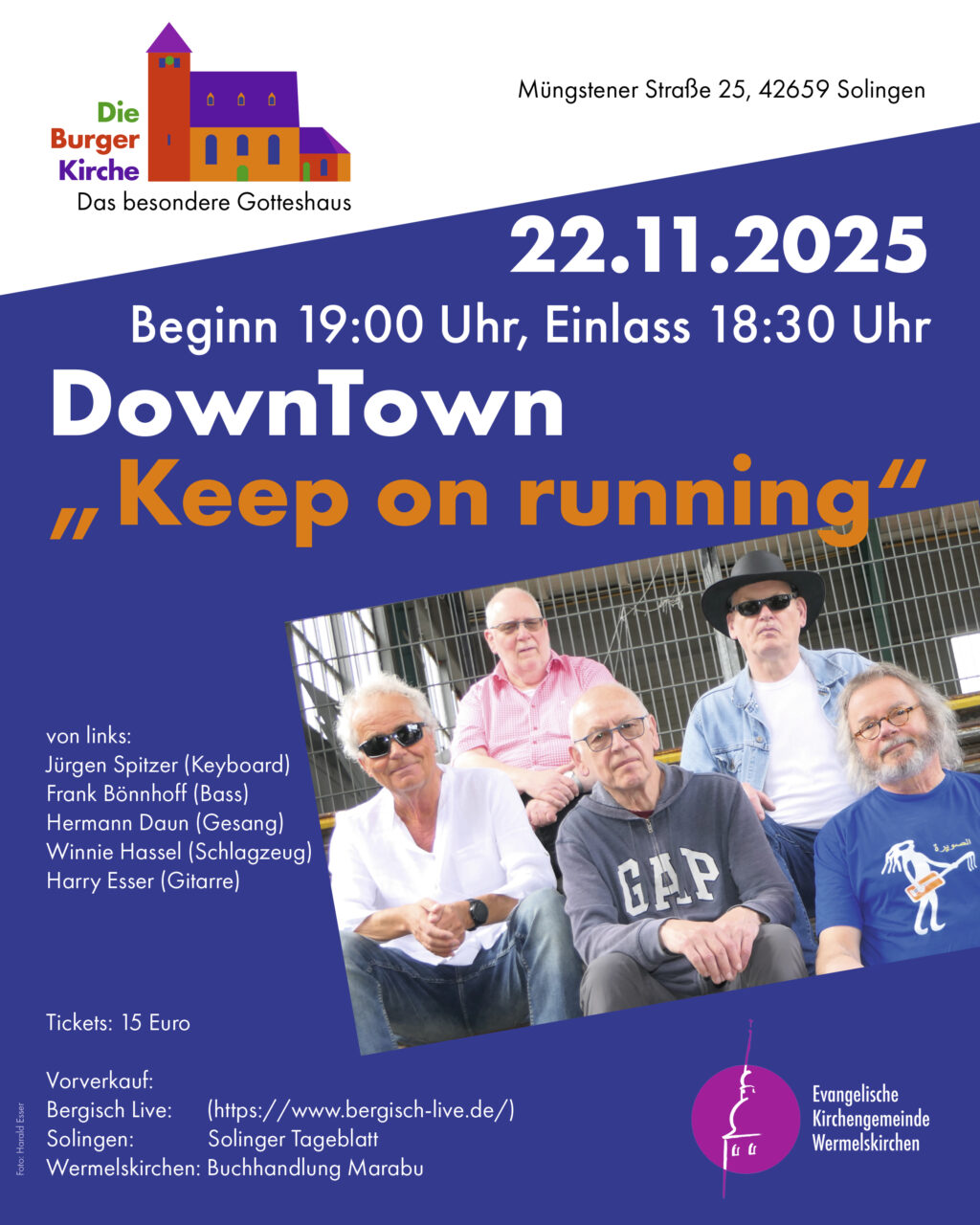 Solingen - Keep on running am 22.11.25. Am Samstag, 22.11.2025, präsentiert Downtown schon zum dritten Mal Oldie-Hits und Rock-Klassiker in der Burger Kirche. Dieses Mal mit einem weinenden Auge, denn die Band ist auf Abschiedstournee. Wer Frank Bönnhoff (Bass), Harry Esser (Gitarre), Schlagzeuger Winnie Hassel, Jürgen Spitzer (Keyboard) und Sänger Hermann Daun noch einmal hören […]