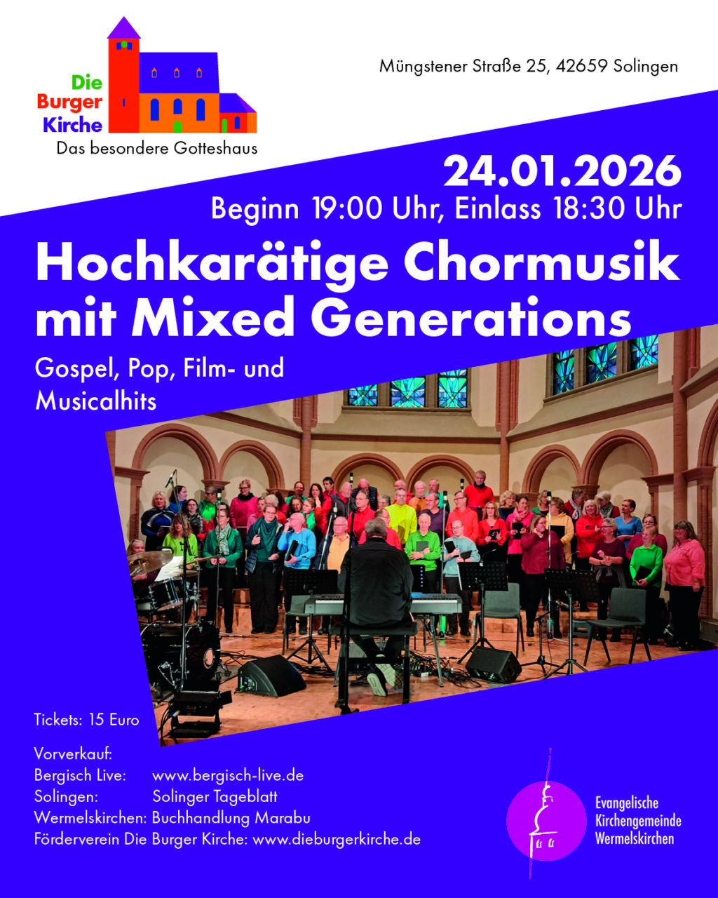 Solingen: Hochkarätige Chormusik mit Mixed Generations am 24.01.26