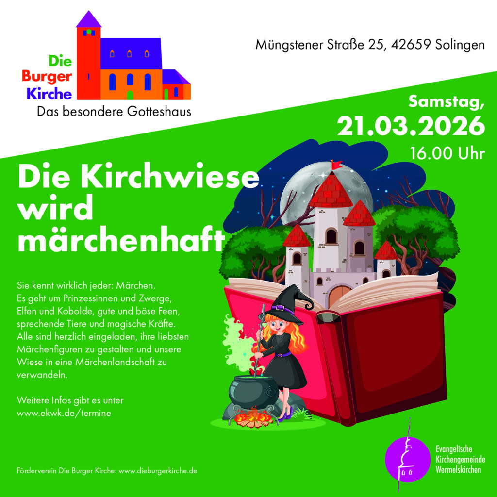 Solingen - Mitmachaktion "Die Kirchwiese wird märchenhaft" Sie kennt wirklich jeder: die Märchen der Brüder Grimm oder aus Tausend und einer Nacht. Sie sollen sich am Samstag, 21. März 2026, auf unserer Kirchwiese einfinden. Es geht um Prinzessinnen und Zwerge, Elfen und Kobolde, gute und böse Feen, sprechende Tiere und magische Kräfte. Alle sind herzlich […]