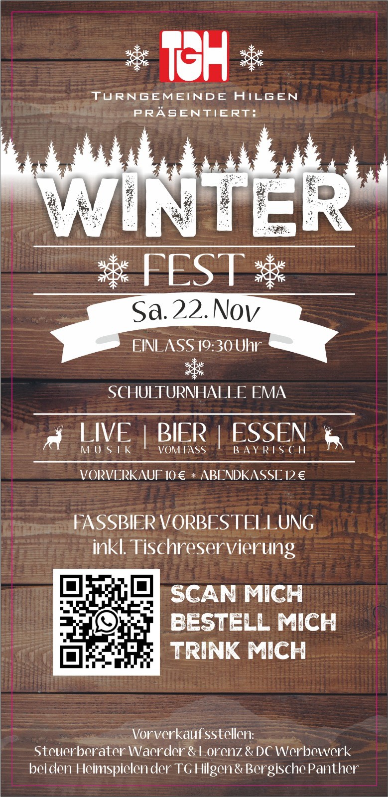 Die Turngemeinde Hilgen wird am 22.11 mit den Bergischen Panthern wieder das Winterfest in Hilgen organisieren.