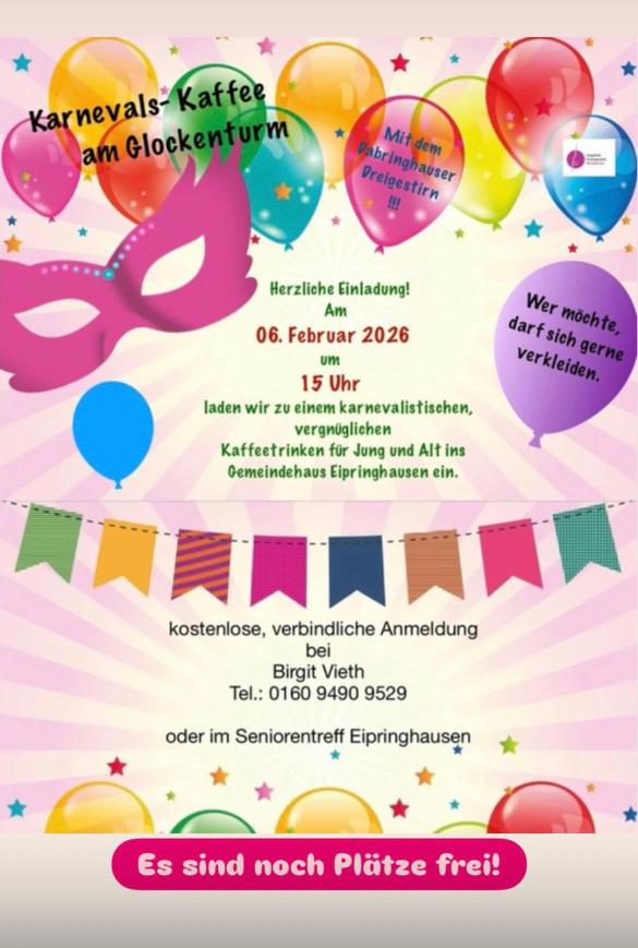 Am 06. Februar 2026 um 15 Uhr laden wir zu einem karnevalistischen, vergnüglichen
