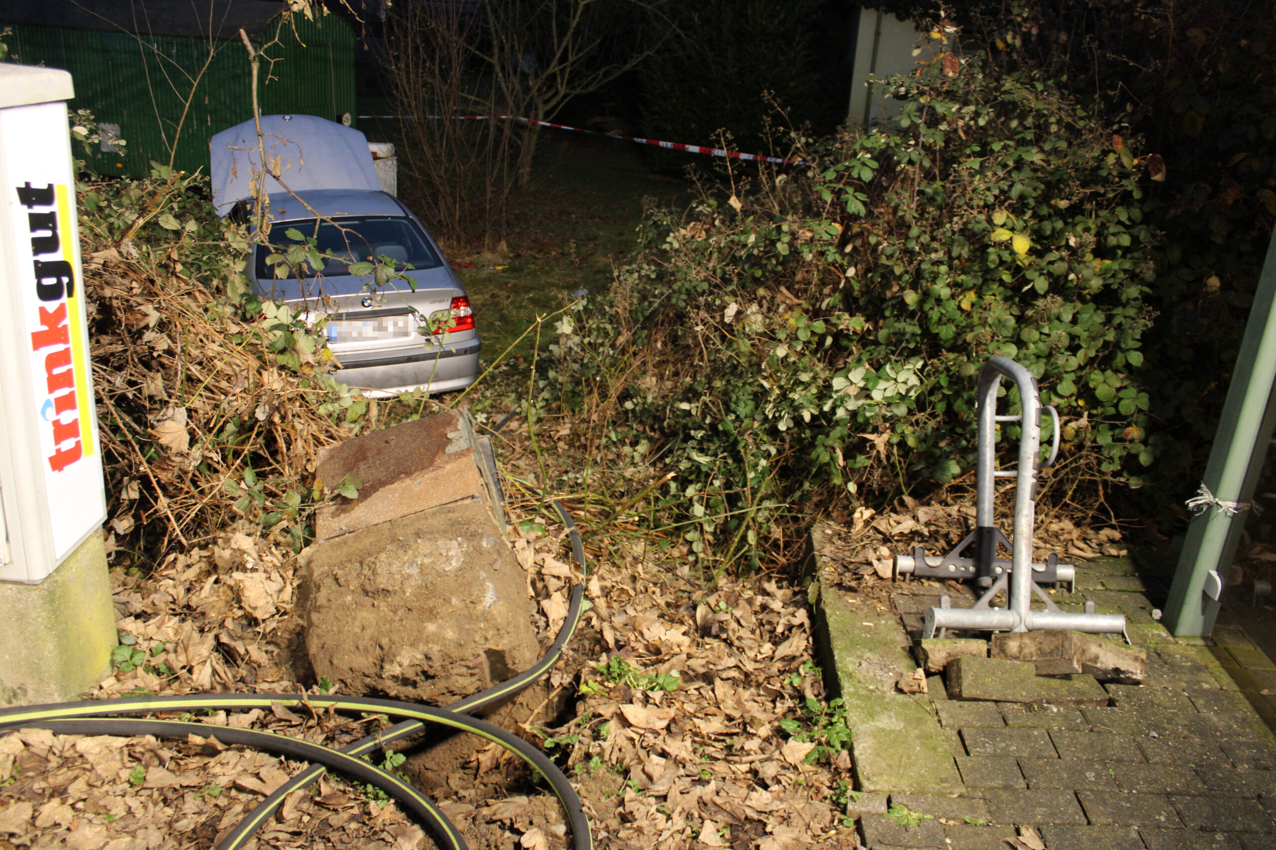 Der Senior befand sich gegen 15:15 Uhr auf dem Gelände der SB-Waschanlage und beabsichtigte an der dortigen Ausfahrt auf die Straße Rothenberg einzubiegen. Unmittelbar vor der Ausfahrt hielt er an, um einen von rechts kommenden Pkw auf das Gelände der Tankstelle einfahren zu lassen. Nach mehreren Zeugenaussagen fuhr er anschließend mit hoher Geschwindigkeit und quietschenden Reifen nahezu geradeaus über die Straße Rothenberg. Auf der gegenüberliegenden Fahrbahnseite entkam er nur knapp einer Kollision mit der dortigen Bushaltestelle „Trompete“ und stürzte linksseitig der Haltestelle eine circa zwei Meter hohe Böschung hinunter. In einem dahinterliegenden Garten kam der Pkw schließlich zum Stillstand.