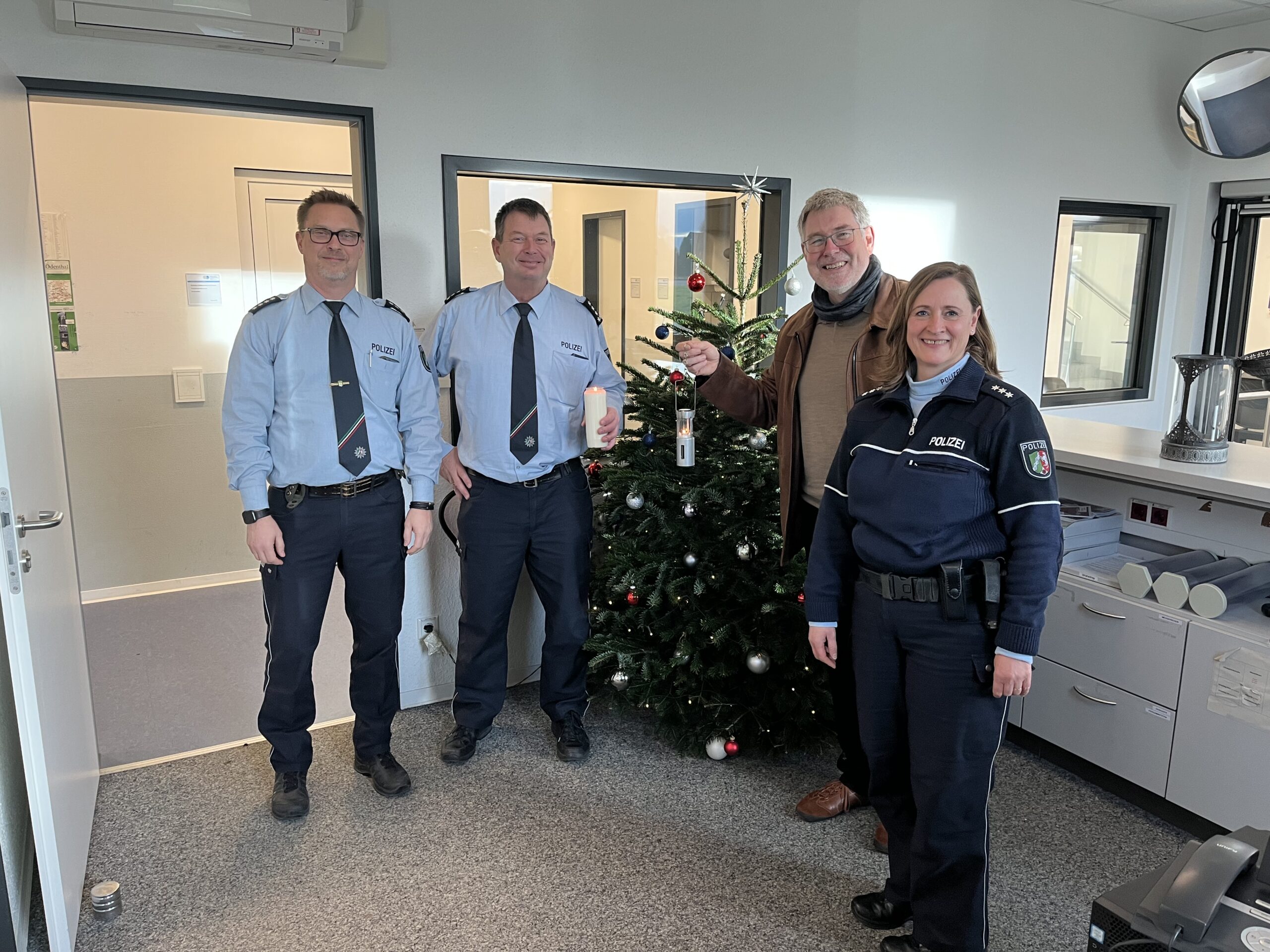 Seit dem Jahr 2000 kommt das „Friedenslicht von Bethlehem“ schon in die Polizeiwachen im Rheinisch-Bergischen Kreis. Schon damals wurde es in der Polizeiwache Bergisch Gladbach sowie den früheren Polizeiwachen in Wermelskirchen und Rösrath entzündet. Heute (16.12.) hat es Polizeiseelsorger Norbert Schmitz in die drei Polizeiwachen in Bergisch Gladbach, Burscheid und Overath gebracht, wo nun jeweils eine große Kerze im Wachbereich aufgestellt wurde.