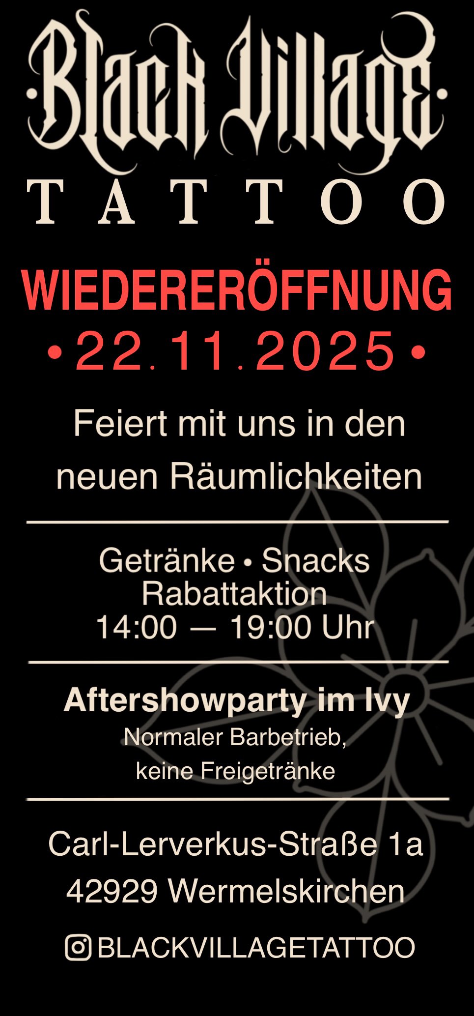 Wermelskirchen – Neueröffnung von Black Village Tattoo am 22.11.25.
